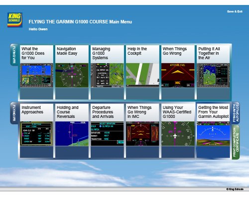 KING's Flying the Garmin G1000 Course is much more than the simple courses that many others offer. This course harnesses the vivid visualization of video and the power of your computer or mobile device to prepare you so well that when you get in the airplane, your hands and eyes will automatically go to the right place.